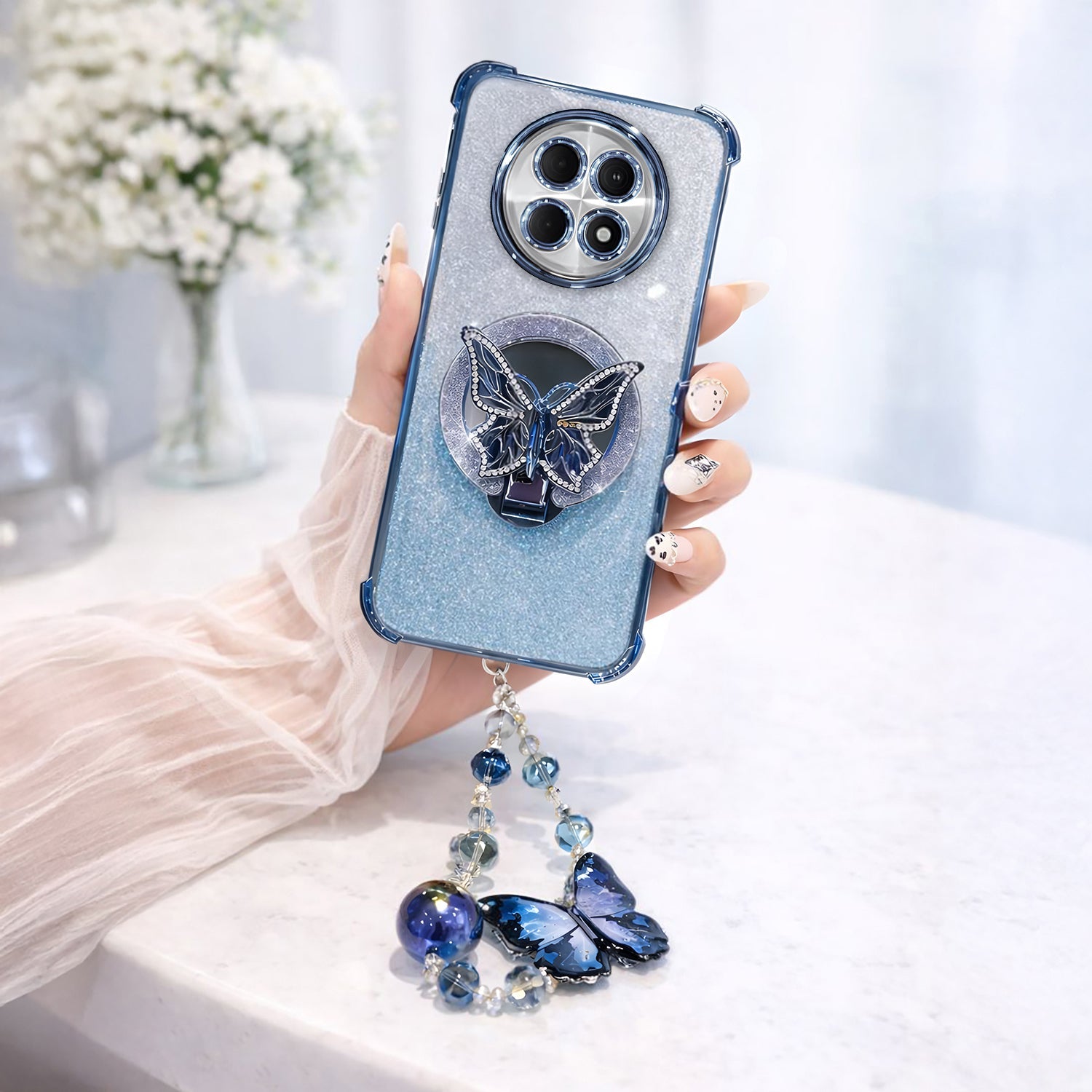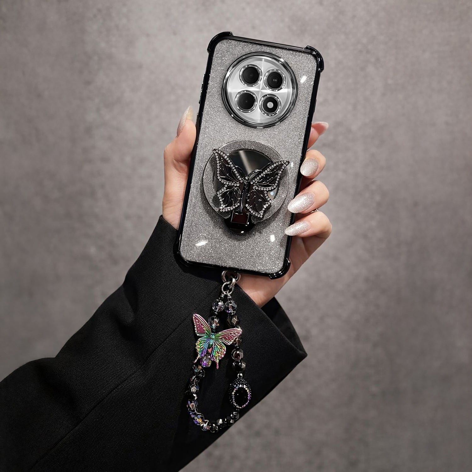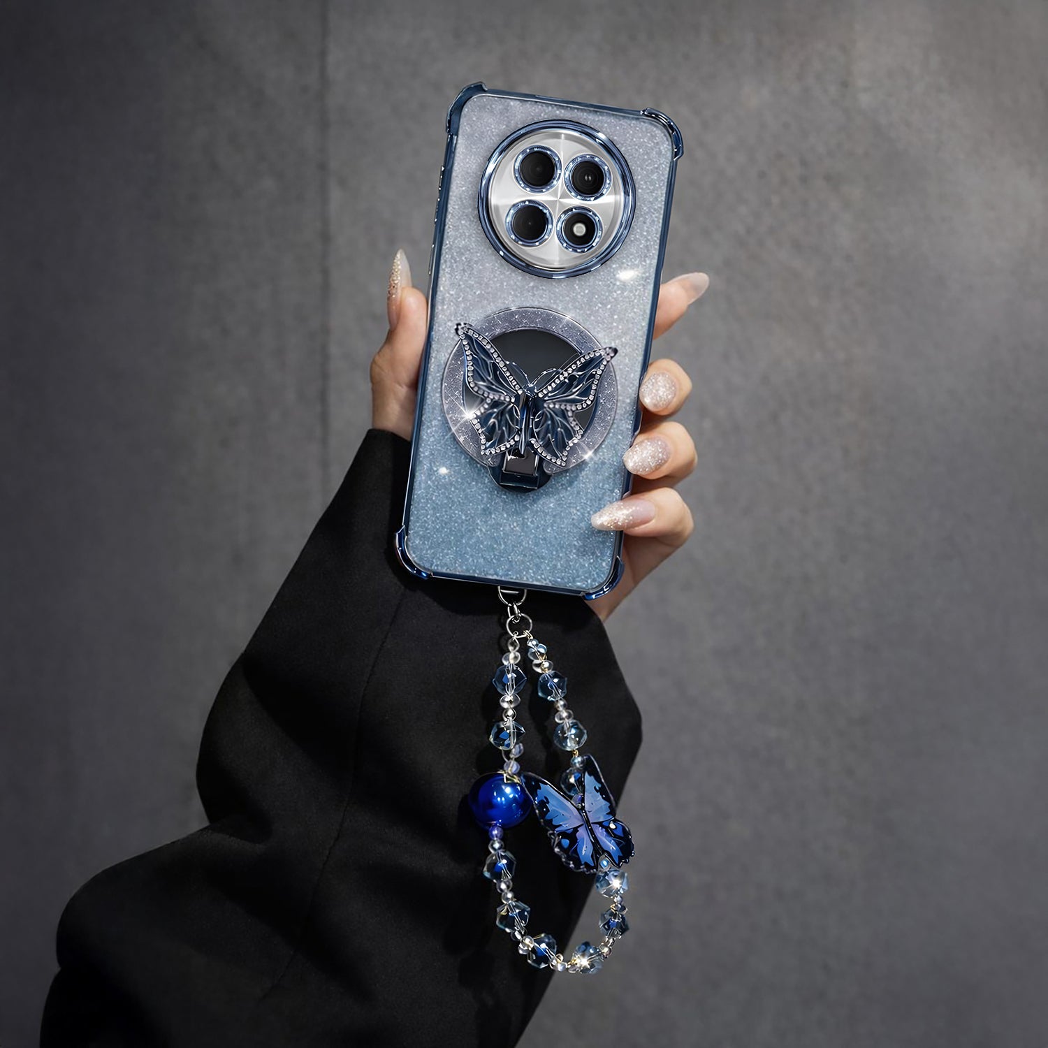 Oppo F31 Pro+ 5G Shockproof Shimmer Butterfly Stand Case with Charm Strap