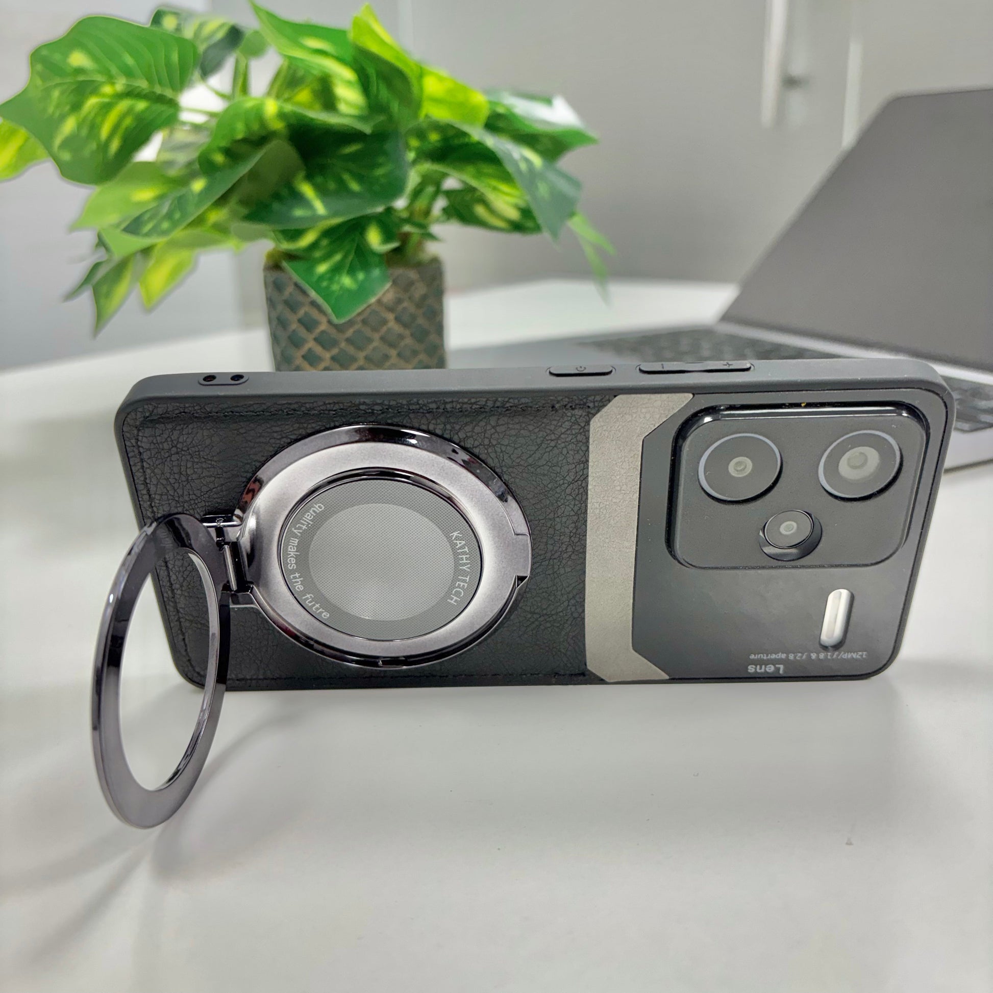 Redmi Note 13 Pro+ 5G Original Luxury Leather Lens Magnifier Ring Stand Case