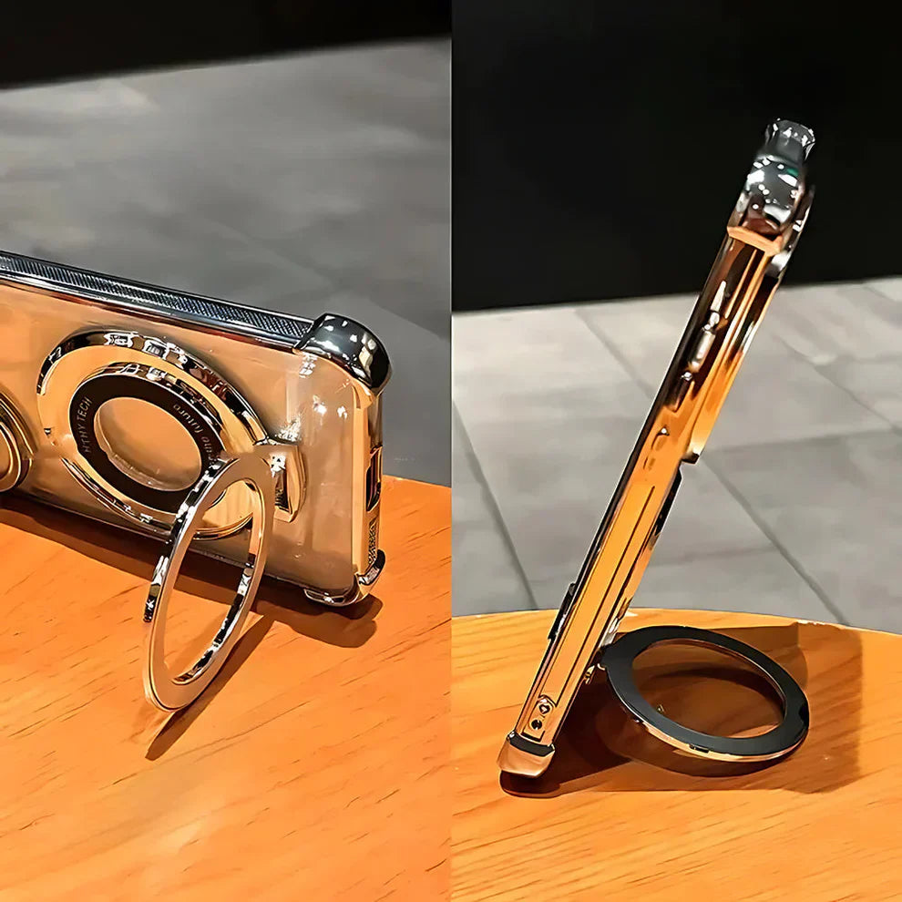 Magnetic Metal Kickstand Transparent Case