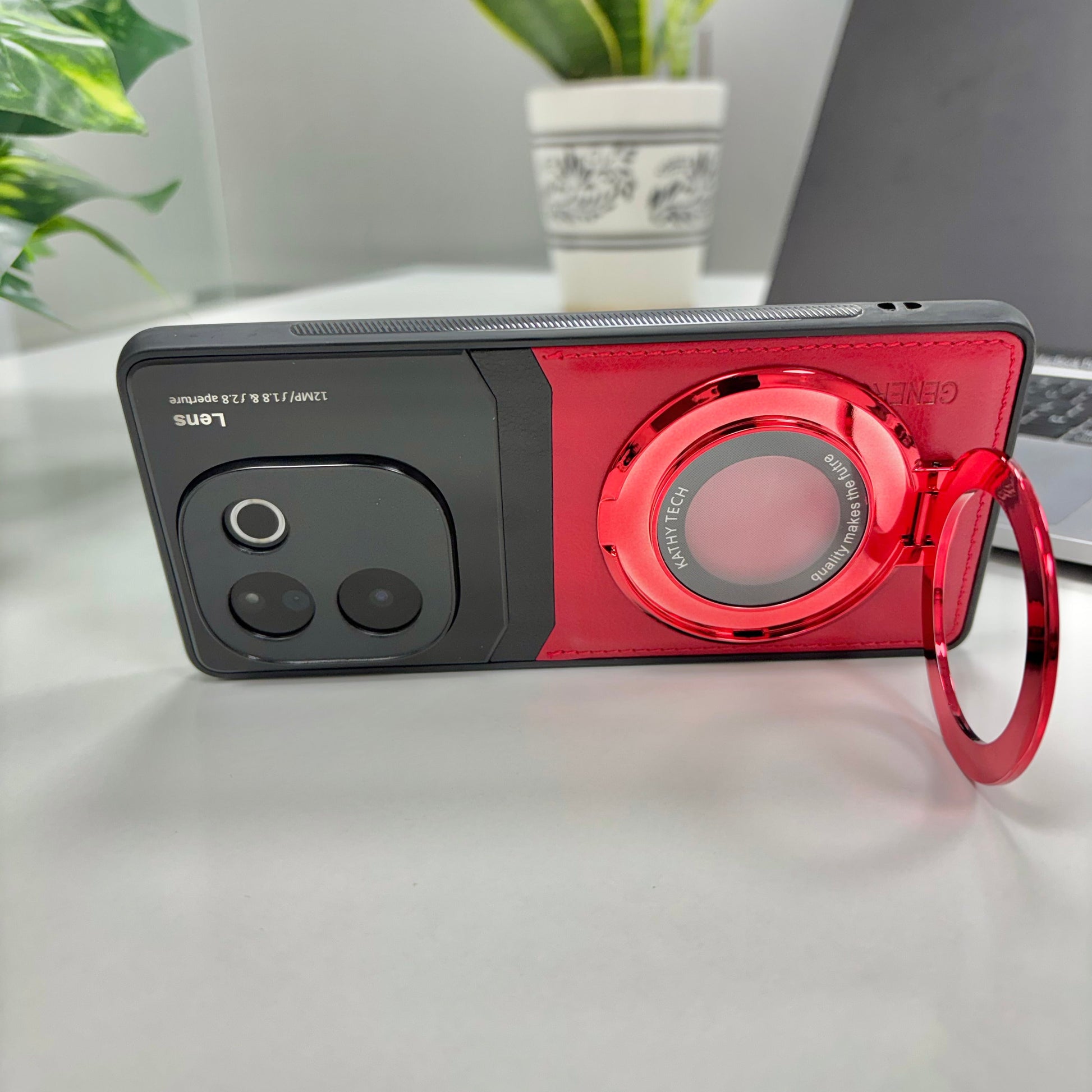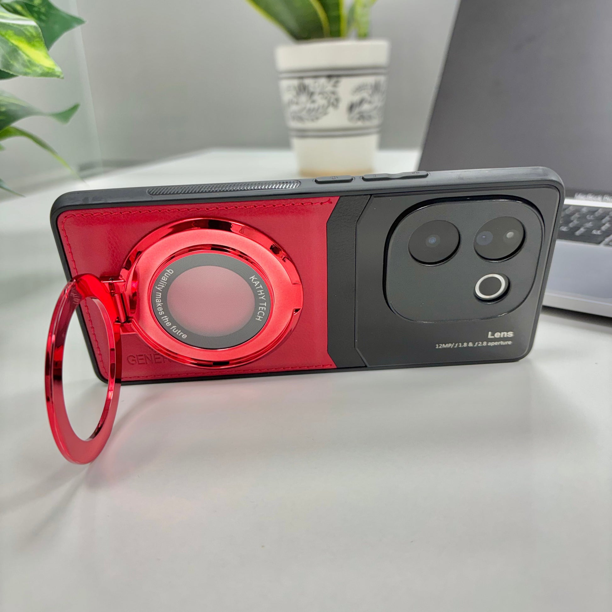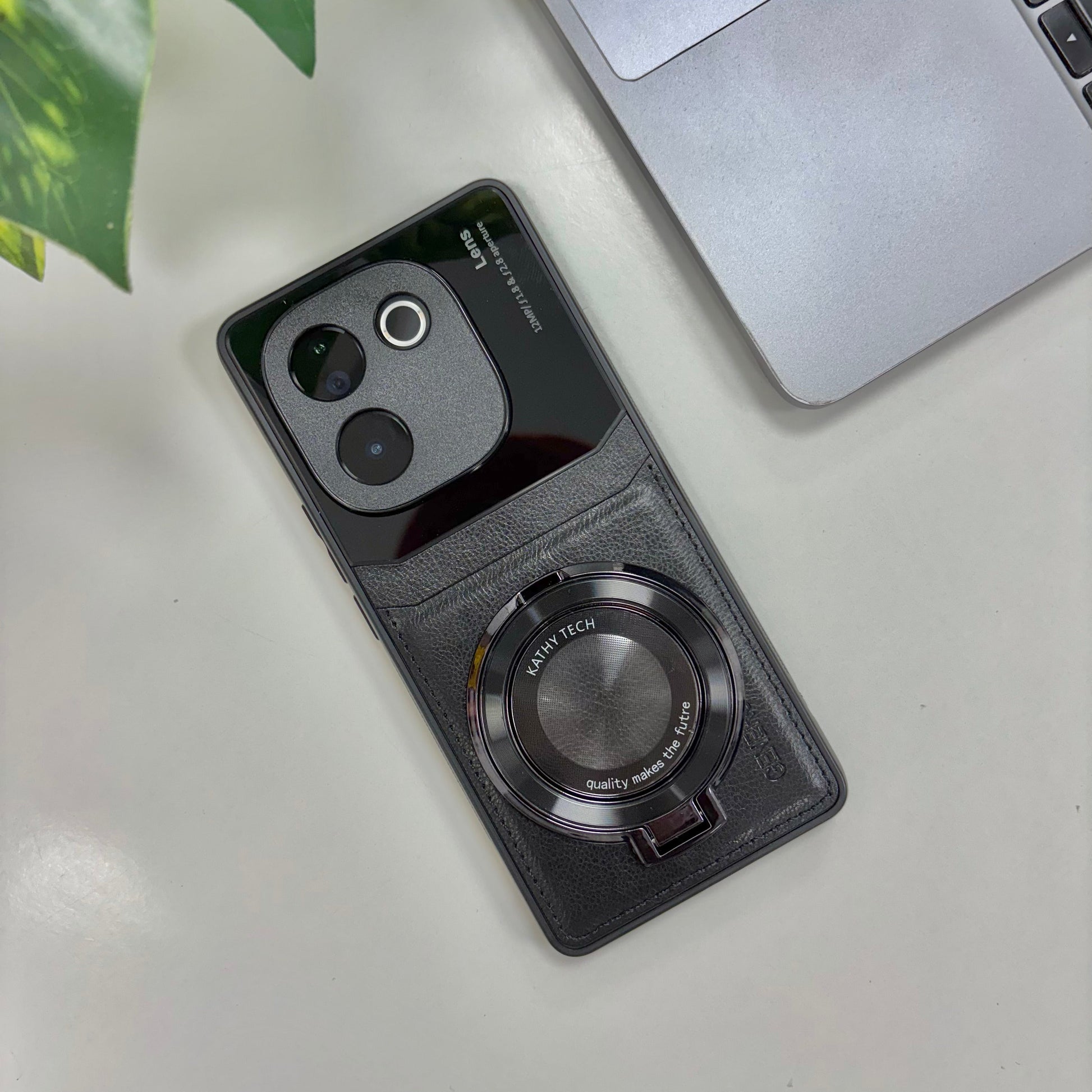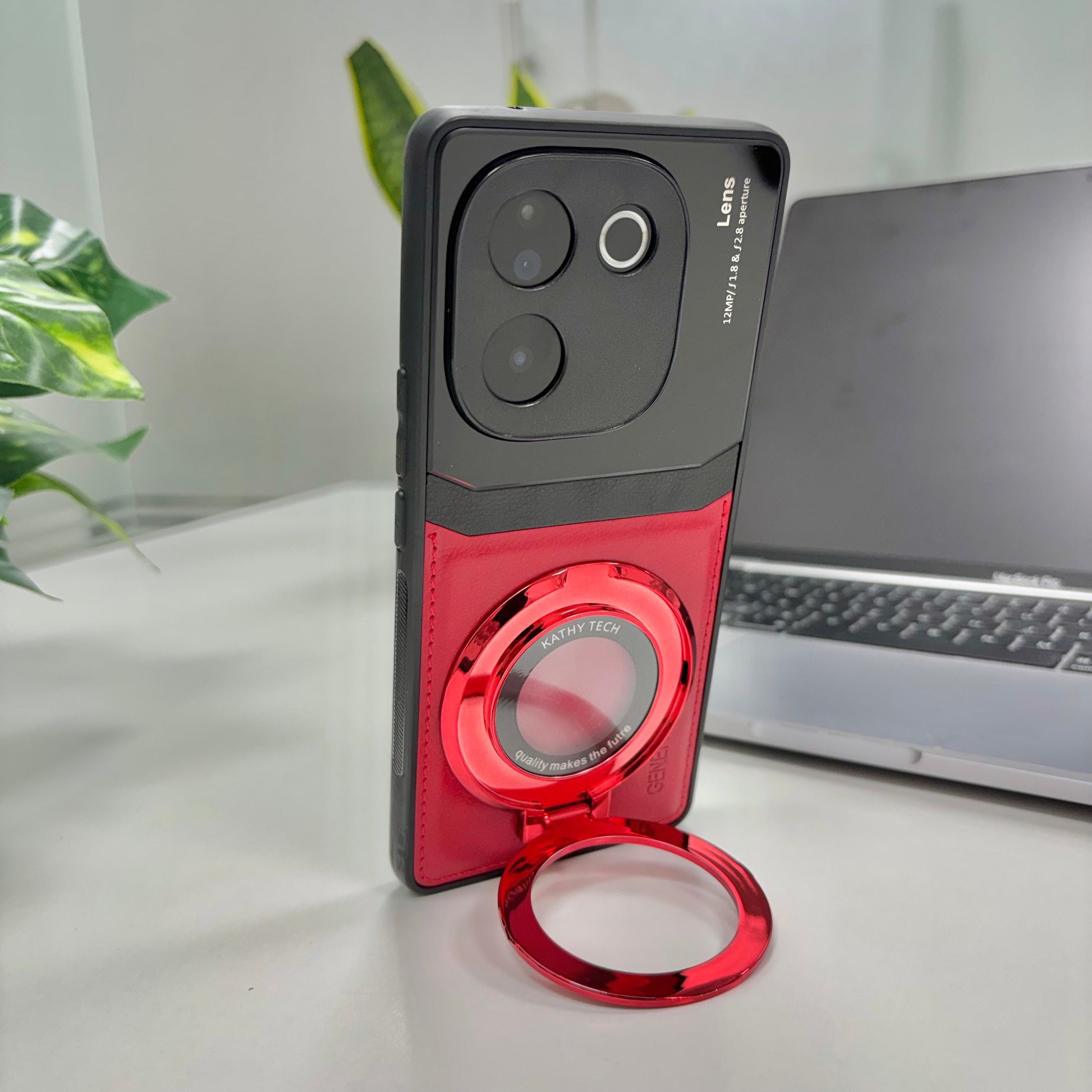 Vivo T3 Pro 5G Original Luxury Leather Lens Magnifier Ring Stand Case