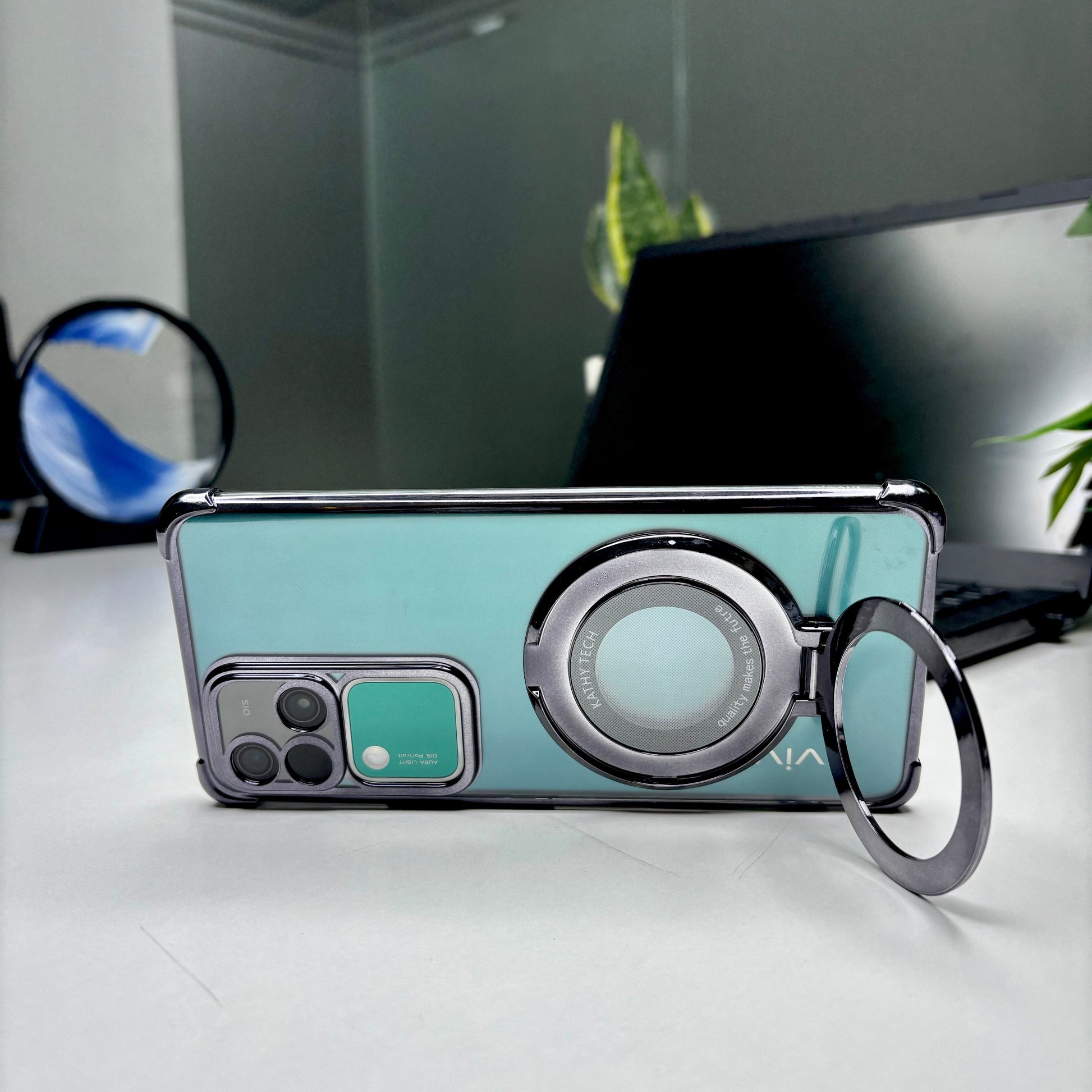 Sleek. Functional. Protective. This transparent case with a sturdy built-in non-rotating magnetic stand is perfect for hands-free viewing and magnetic mount support—without compromising on your phone’s style.