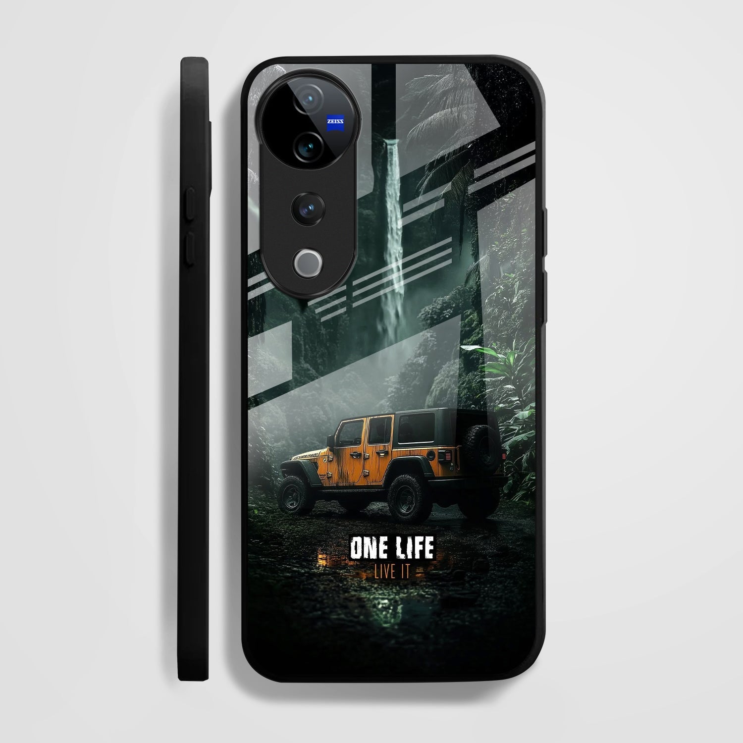 Vivo V40 Pro 5G Premium Acrylic Shockproof Glass Back Case (Jeep Case)