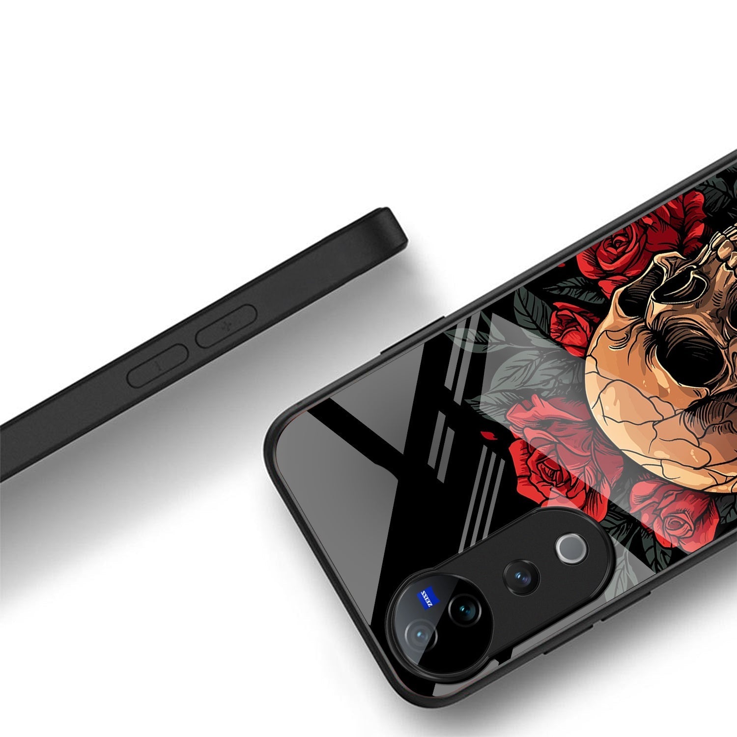 Vivo V40 Pro 5G Premium Acrylic Shockproof Glass Back Case (Rose Skull)