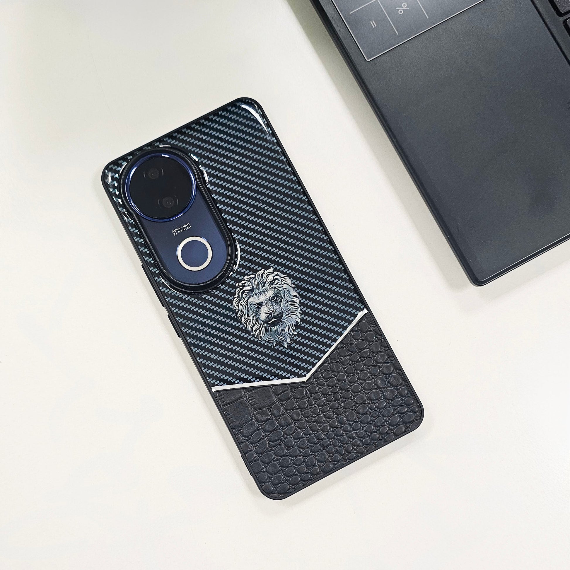 Vivo V50 5G Luxury Lion Pattern Leather And Liquid Silicone Case
