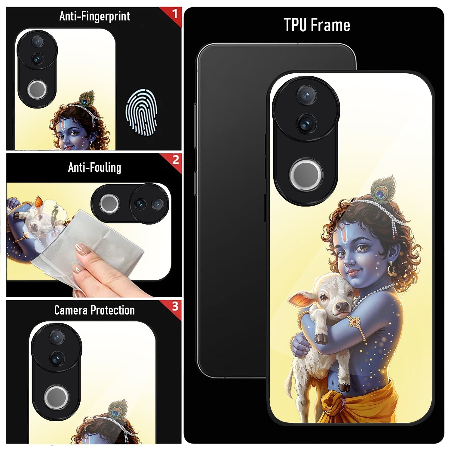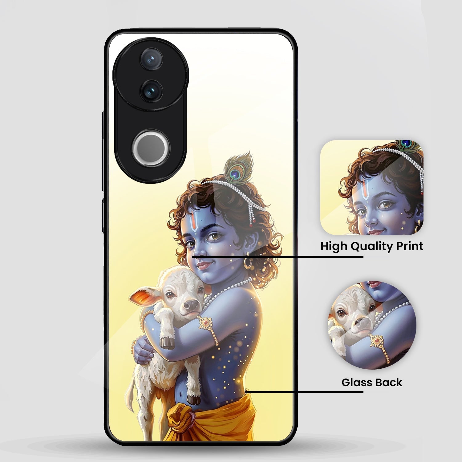 Vivo V50 5G Premium Acrylic Shockproof Glass Back Case (Cute Krishna)