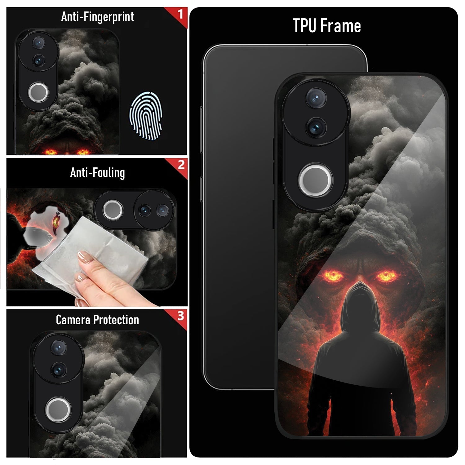 Vivo V50 5G Premium Acrylic Shockproof Glass Back Case (Dark Flame)