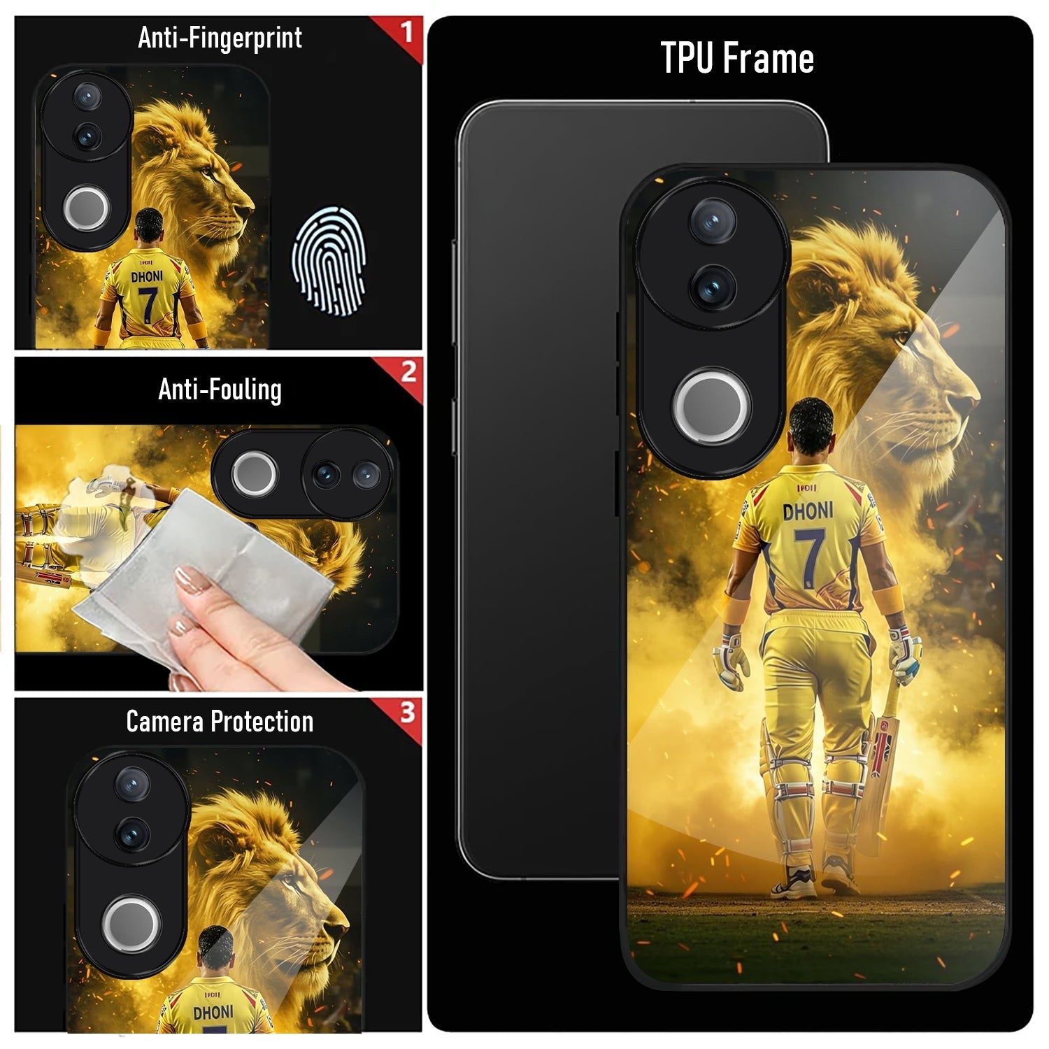 Vivo V50 5G Premium Acrylic Shockproof Glass Back Case (Dhoni)