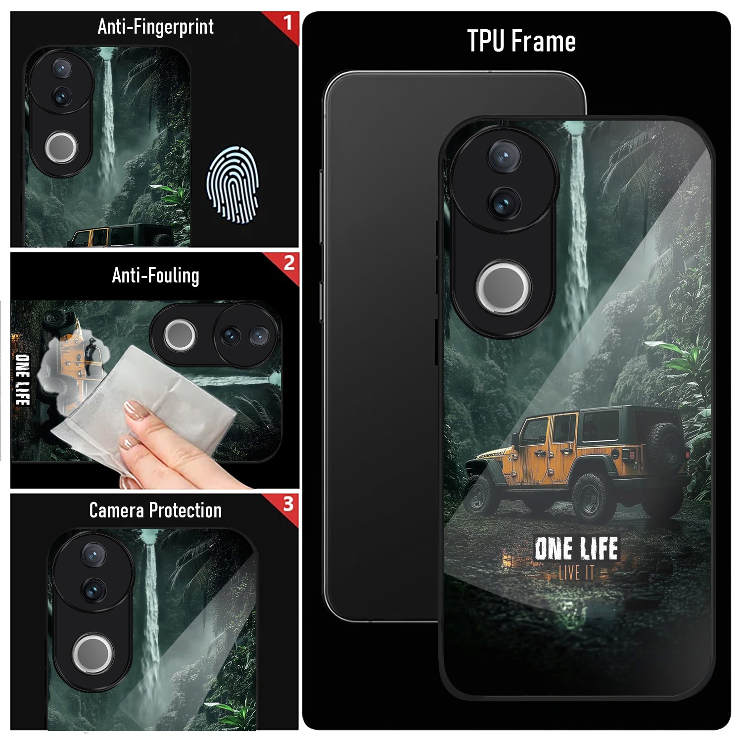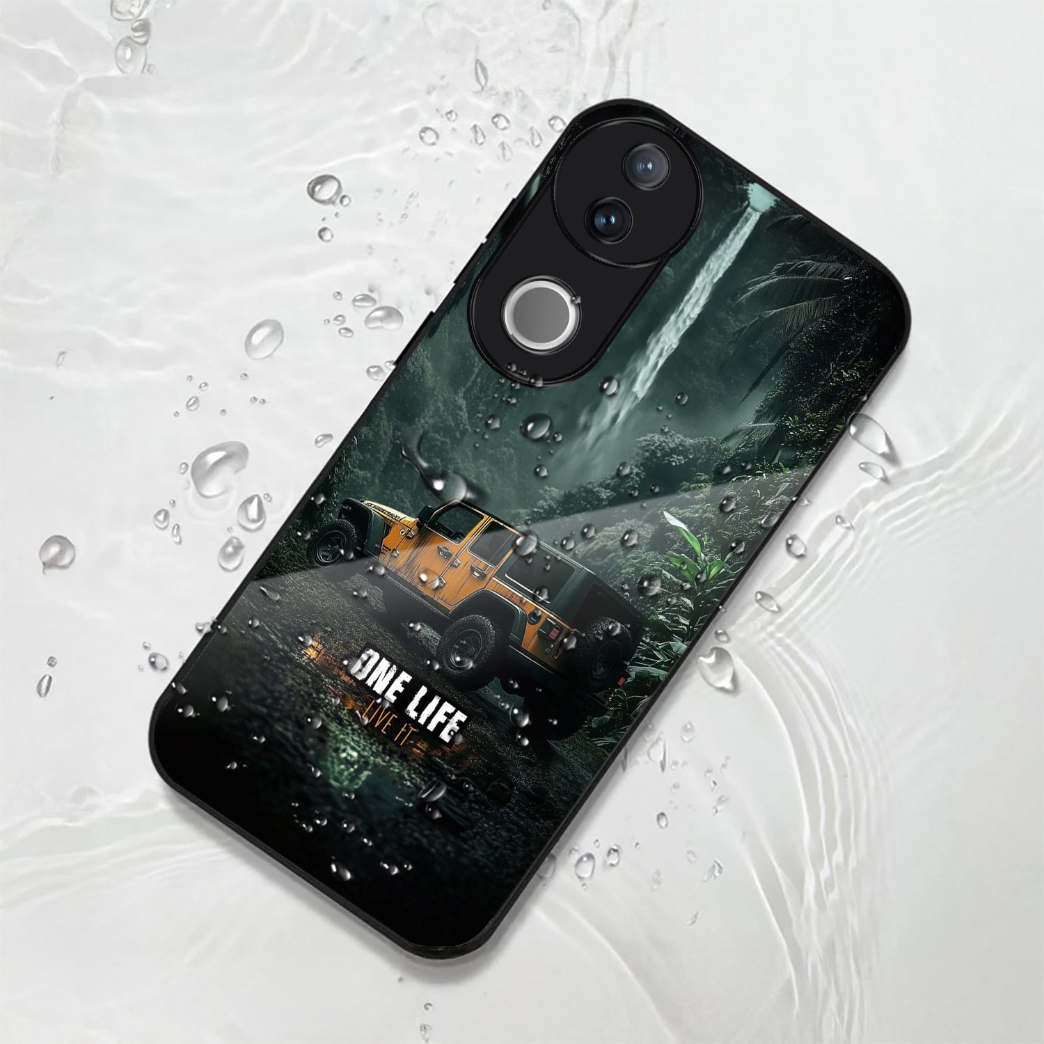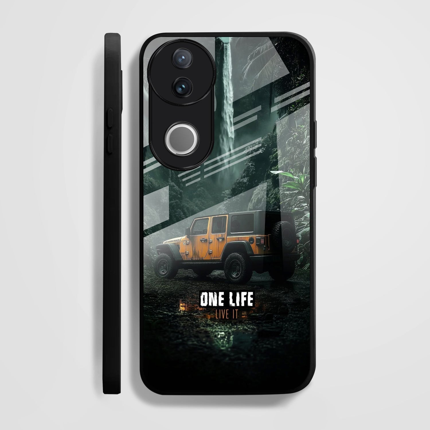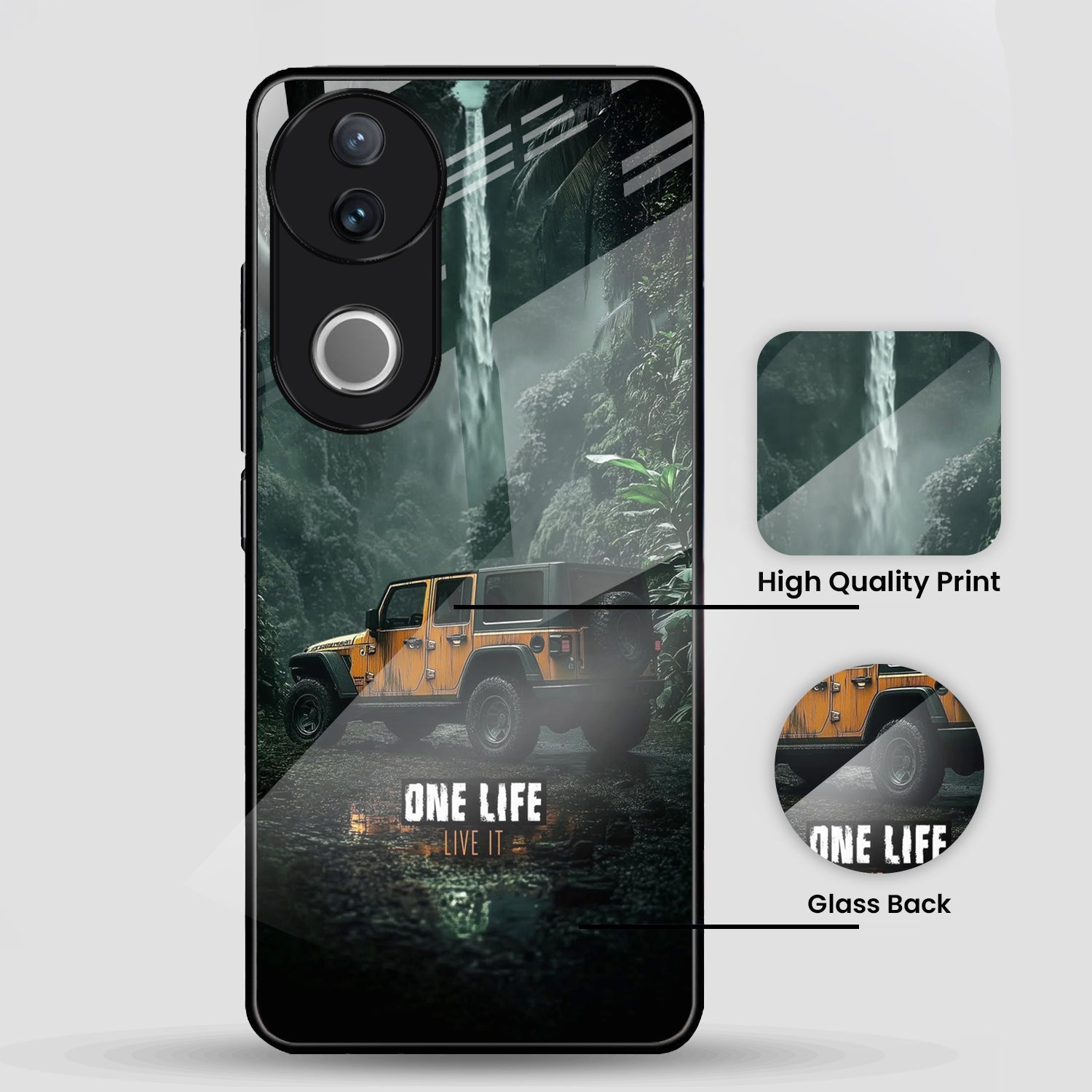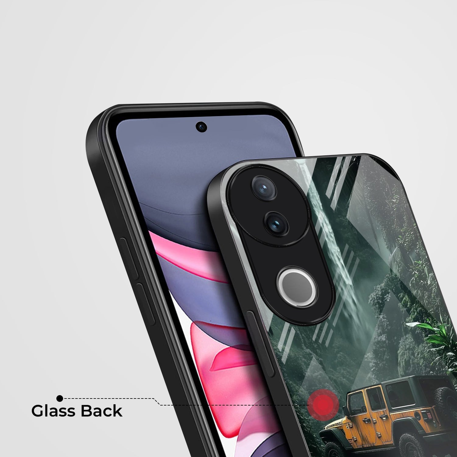 Vivo V50 5G Premium Acrylic Shockproof Glass Back Case (Jeep Case)