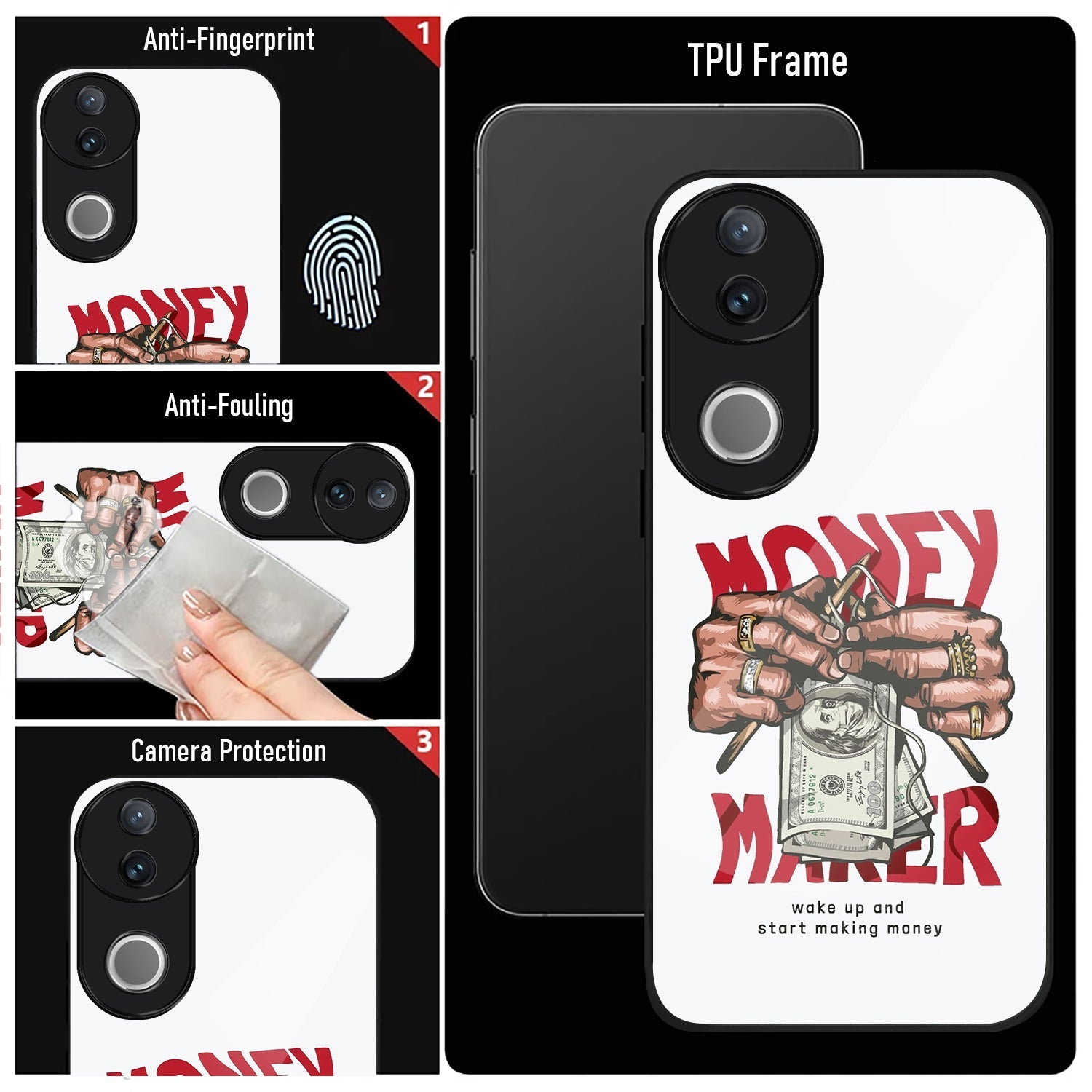 Vivo V50 5G Premium Acrylic Shockproof Glass Back Case (Money Maker)