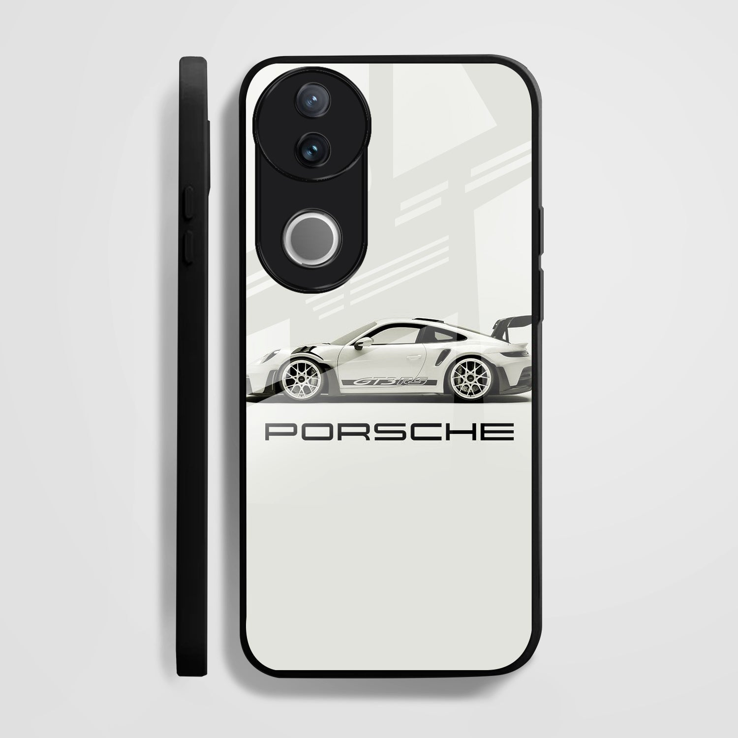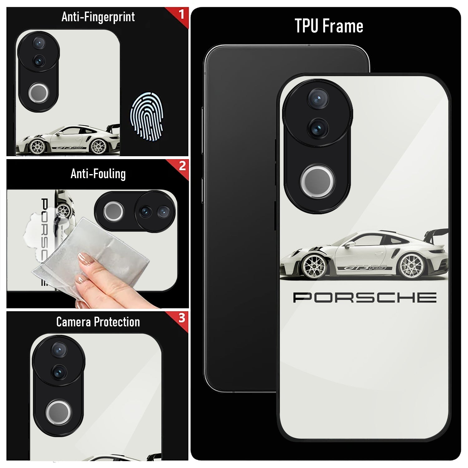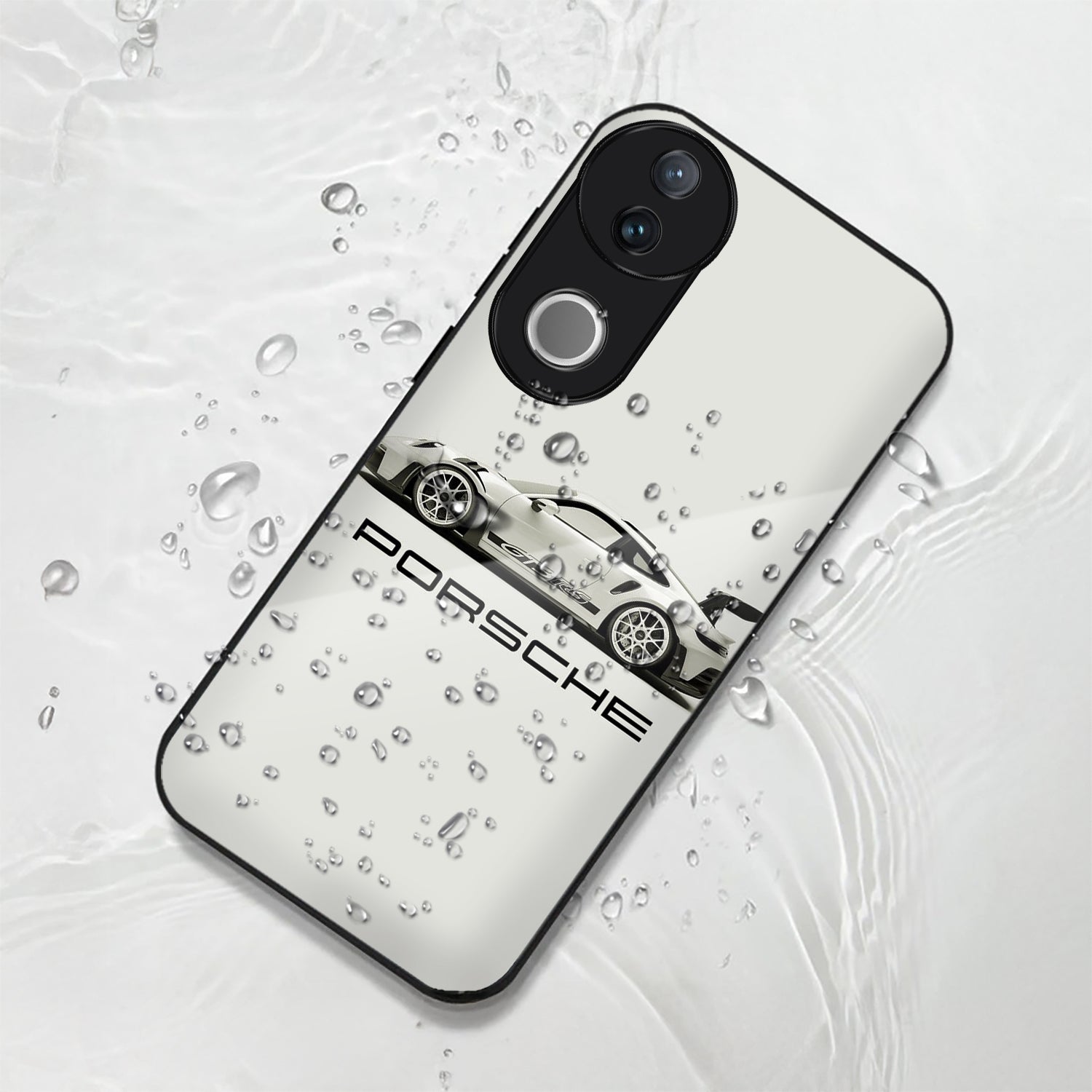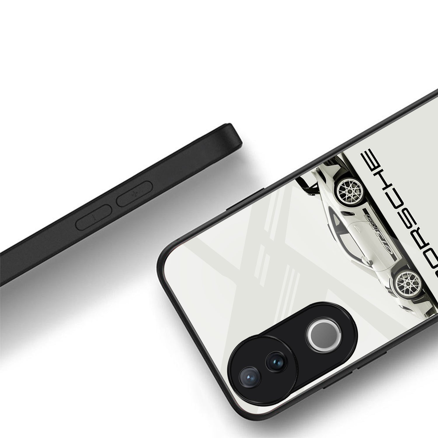 Vivo V50 5G Premium Acrylic Shockproof Glass Back Case ( White Porsche )