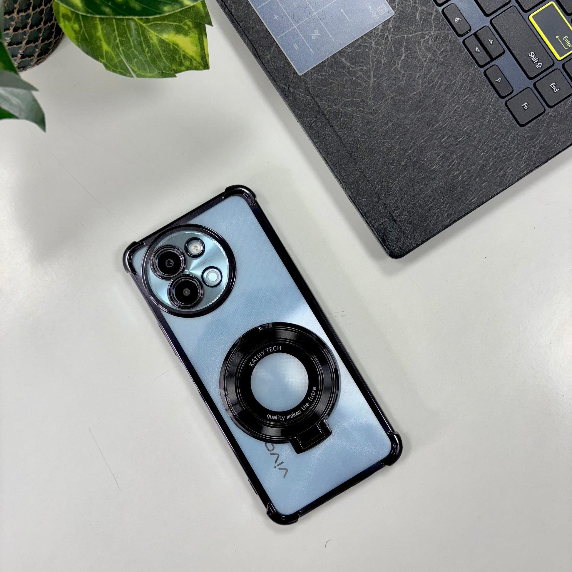 Vivo Y58 5G Original Luxury Magnifier Ring Stand Shockproof Airbags Corner Case